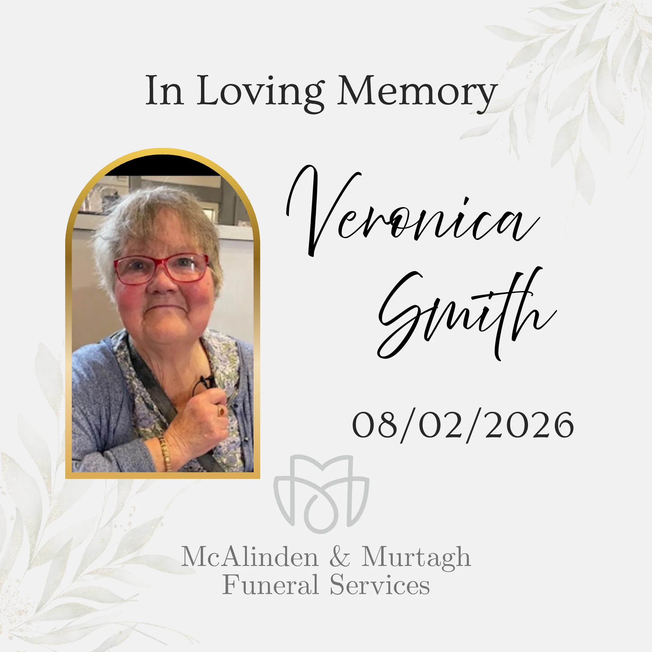 Smith (née McKerr), (Sloan Street, Lurgan), February 8, 2026, peacefully at Craigavon Area Hospital, surrounded by her loving family and close friends. Veronica, beloved wife of the late Desmond (Dessie), a dearly loved mother of Kathy, and a loving grandmother to Maeve. Loving daughter of the late Pat and Kitty McKerr (Shankill, Lurgan), and a […]