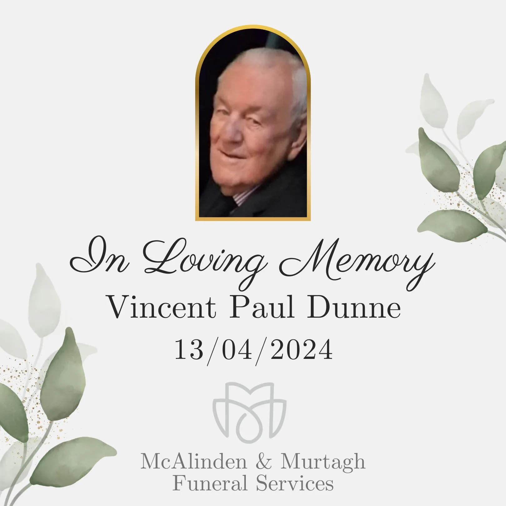 Dunne, (Wood Lane, Lurgan, formerly of Dublin and London), peacefully on Saturday, April 13, 2024 at Craigavon Area Hospital surrounded by his loving family. Vincent Paul, dearly beloved husband of the late Ann and loving father of Carol and the late Michael, a dear father in law to Geoff, a cherished grandfather of Emma, Rachel, […]
