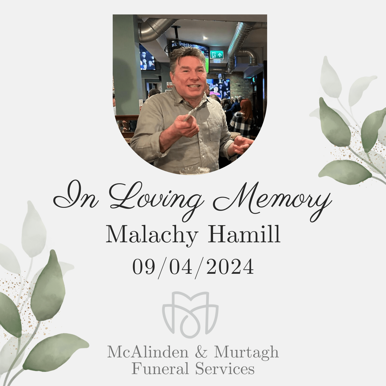Hamill (Lurgan, formerly of Aghagallon) April 9, 2024 peacefully at the Royal Victoria Hospital. Malachy, (Riverglade Manor), a much-loved father of Matthew and Thomas and a beloved son of the late John and Ethna Hamill (Aghagallon). Malachy will repose at the family home, 35 Parknasilla Way, Aghagallon, tomorrow Thursday from 2.00 pm until 9.00 pm […]
