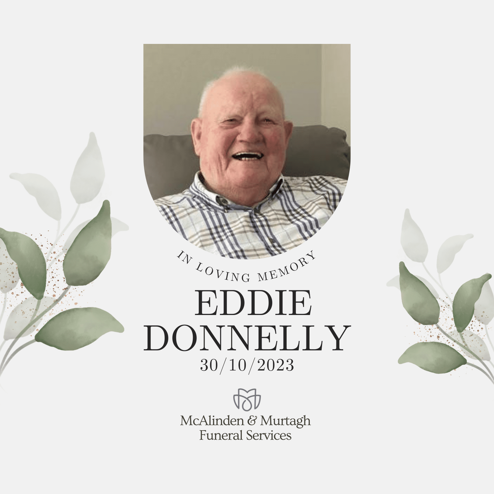 Donnelly (Derrytrasna), October 30, 2023. Eddie, beloved husband of the late Bernadette and loving father of Mairead, Teresa, Yvonne and Andrea, a dear father in law of Martin, Paul, Stephen and the late Martin, and a proud granda of Ryan, Stephen, Callum, Mark, Sean, Aoife and Lucy and great grand son Kyle. Eddie will be […]