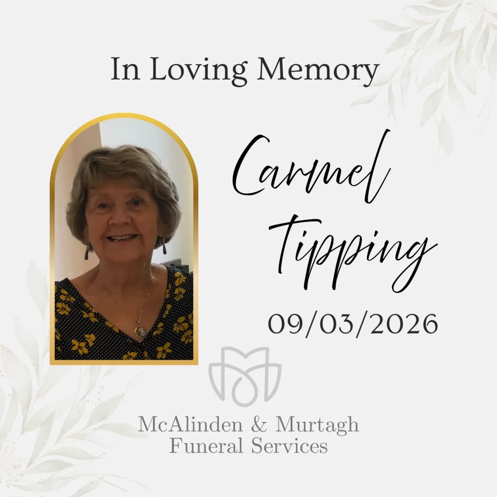 Tipping (nee Donnelly), (Lurgan), March 9, 2026, peacefully at Ashbrook Care Home, Dungannon surrounded by her loving family.