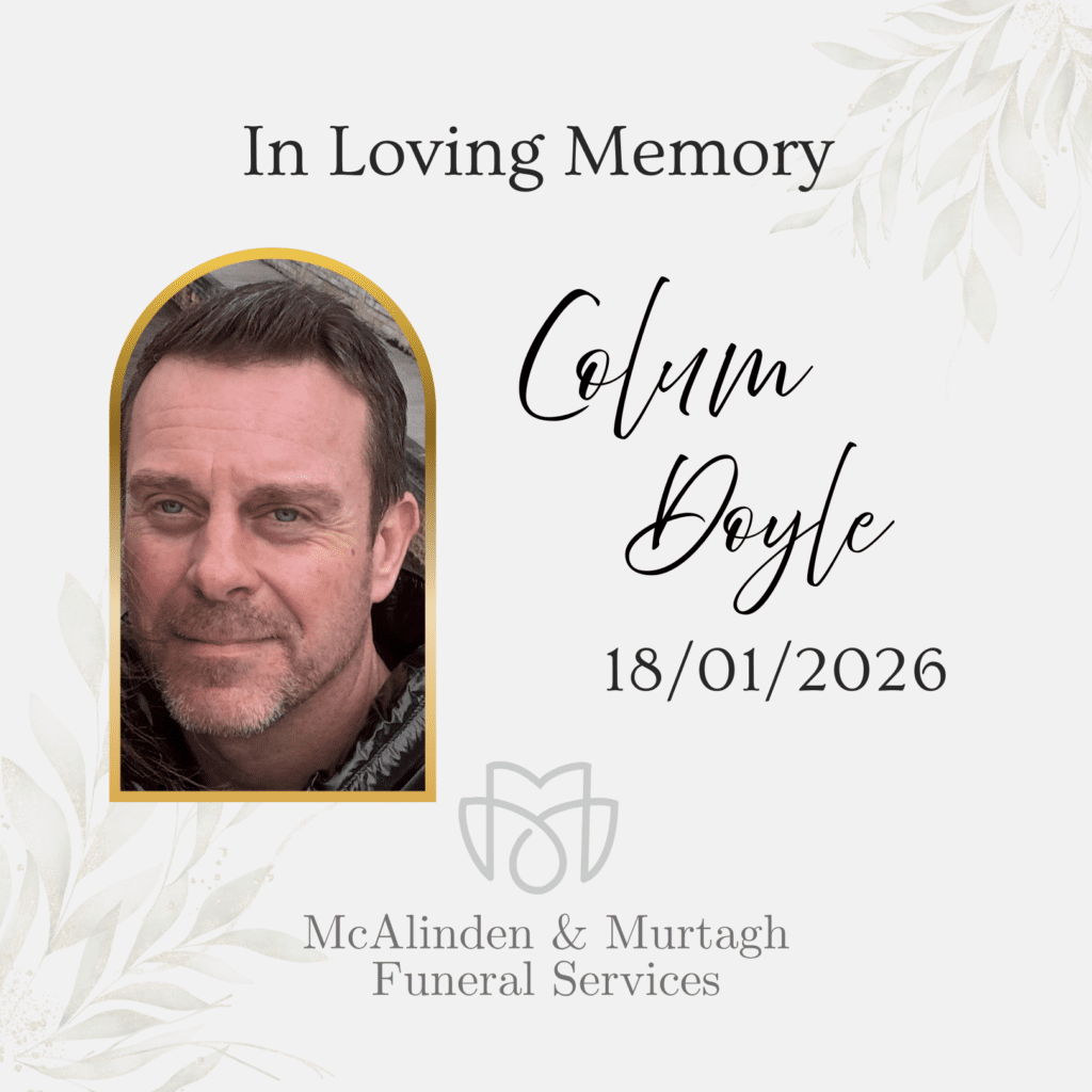 Colum will repose at his home, 11 James Lodge, Gawleys Gate, BT67 0WJ, on Wednesday and Thursday from 5.00pm to 8.00pm on both days, where family and friends are welcome to pay their respects.