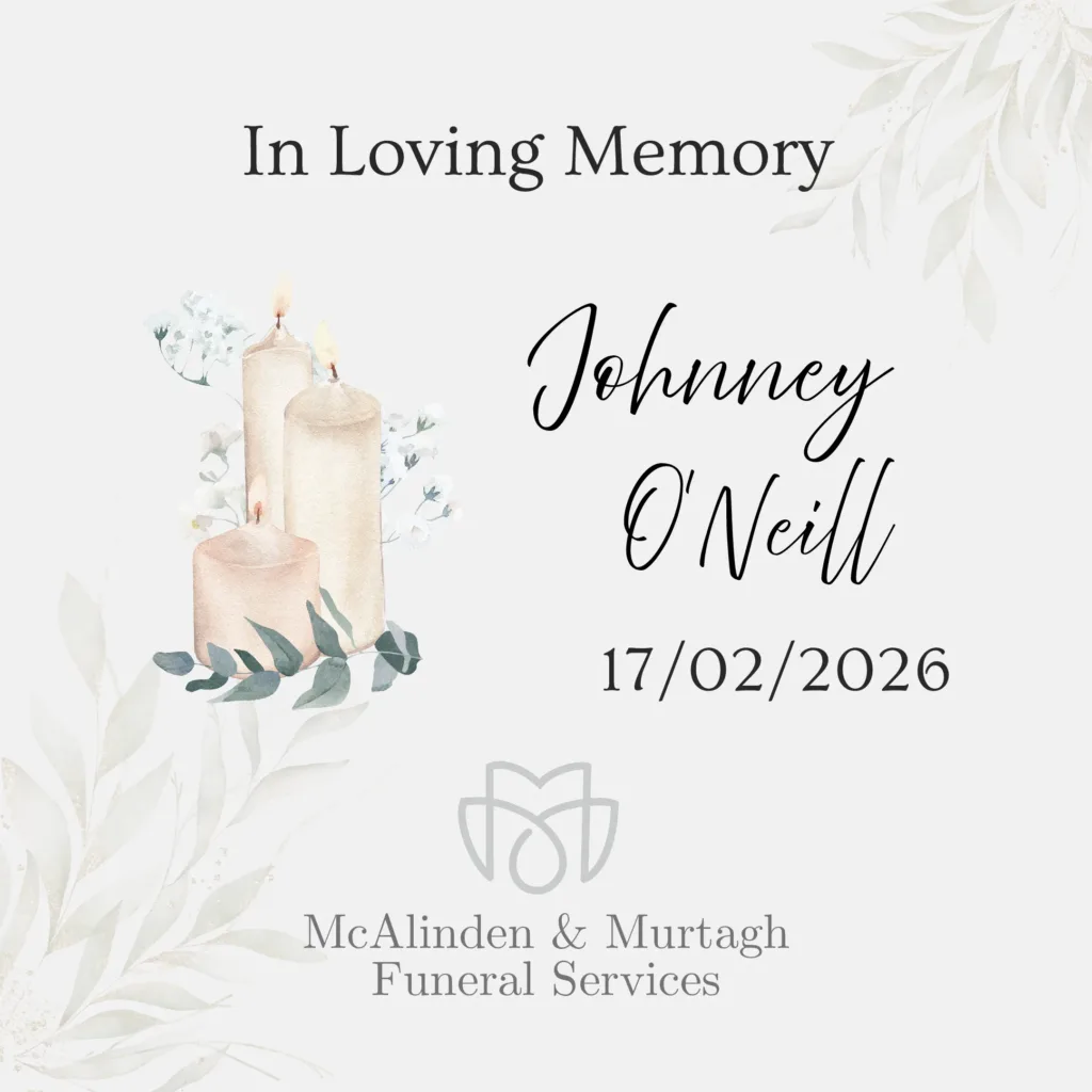 O’NEILL, (27 Lurgan Road, Aghagallon), 17 February 2026, peacefully at home, surrounded by his loving family.