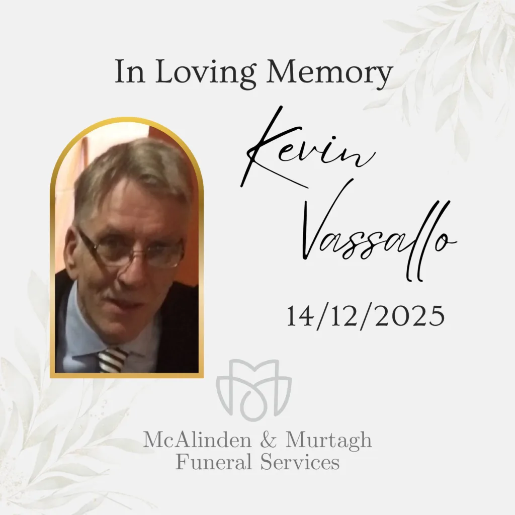 Vassallo (Craigavon, formerly of Stretford, Manchester), December 14, 2025 peacefully at Craigavon Area Hospital surrounded by the love of his family.