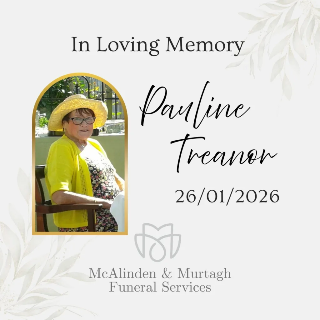 Treanor (née O’Neill), (Meadowbrook, Craigavon), January 26, 2026, peacefully at Craigavon Area Hospital surrounded by her loving family.