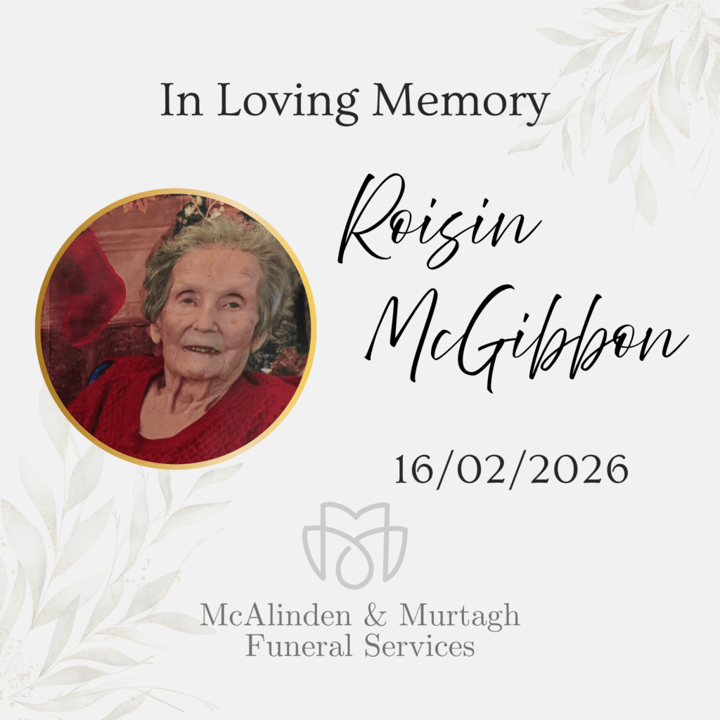 McGibbon (Francis Street, Lurgan), February 16, 2026, peacefully, at Iveagh Care Home, Banbridge.