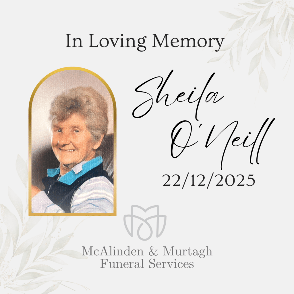 O’Neill (née McNeice), (Craigavon formerly Annaghmore, Portadown), December 22, 2025, peacefully at home surrounded by her family.