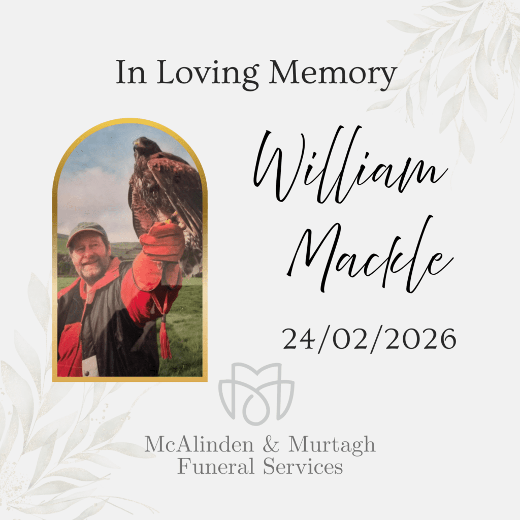 A Funeral Service for William will take place at McAlinden and Murtagh’s Funeral Home, 43 Ardmore Road, Lurgan BT66 6QP today, Friday at 1.00pm followed by burial in St Patrick’s Cemetery, Derrymacash.